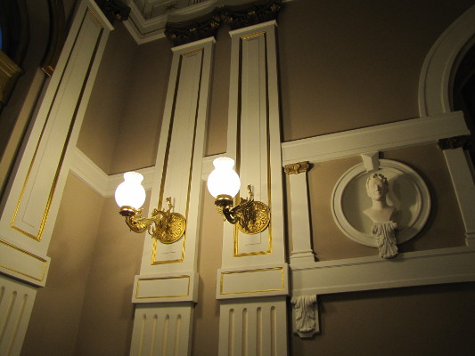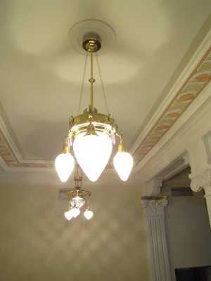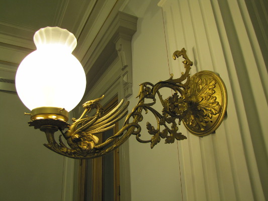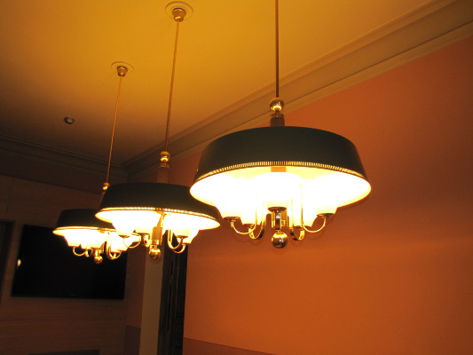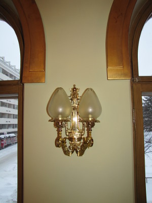 valaisinta juhlasalin kattokruunuista käytävien lampetteihin.